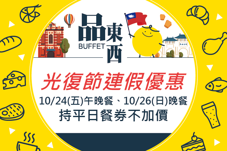 光復節連假期間(2025/10/24~10/26)現場仍為假日價,以上活動期間可使用未過期之平日餐券不加價